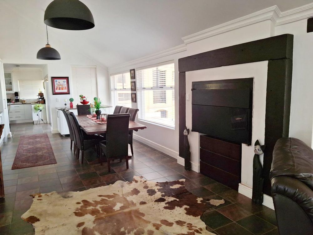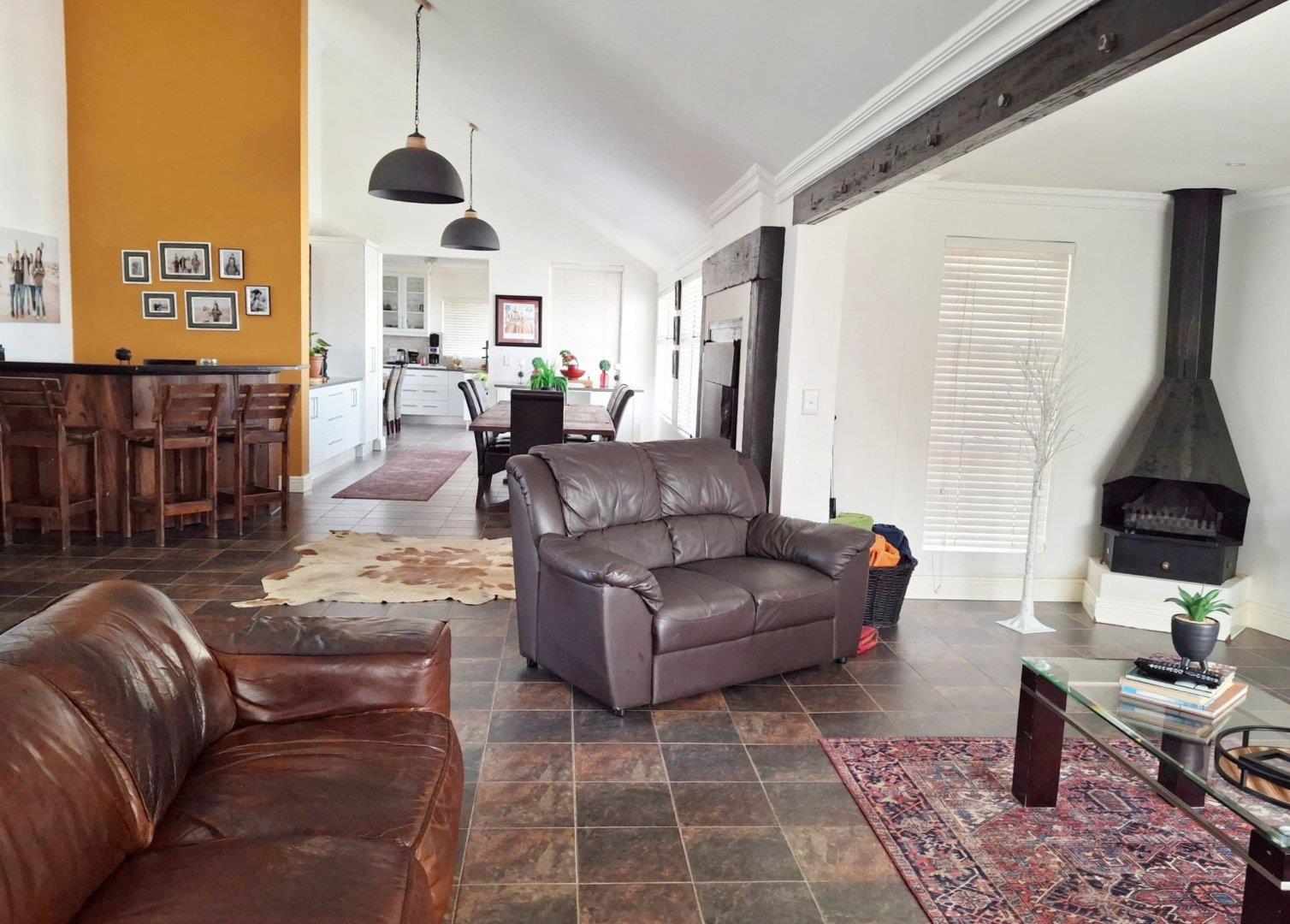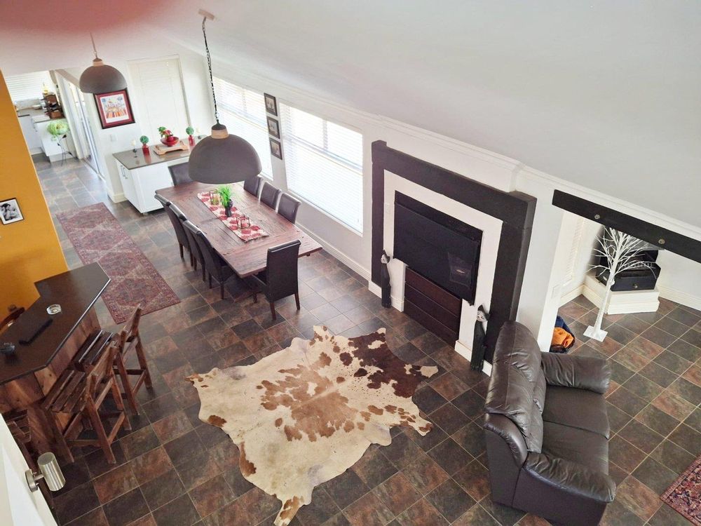 Open-Plan TV Room + Fireplace + Bar + BBQ + Dining area + kitchen.