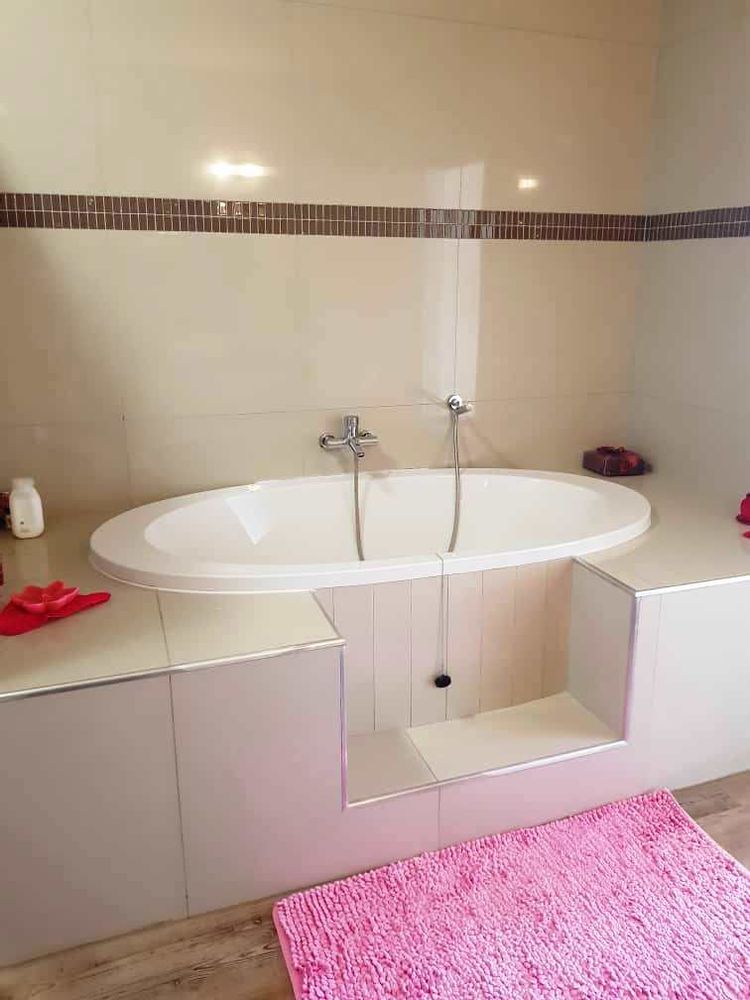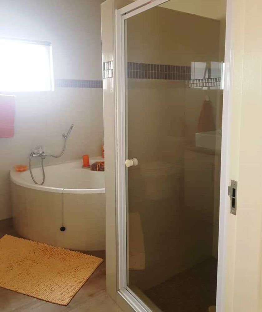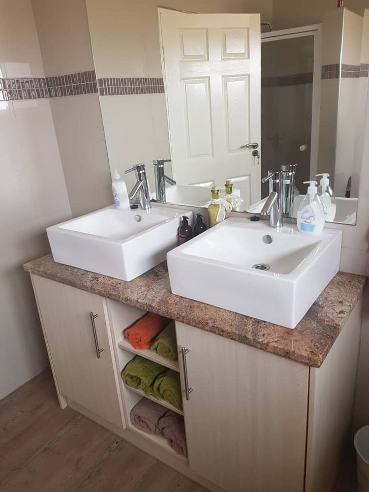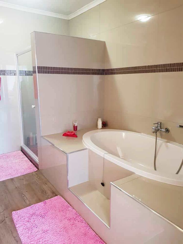 Main bedroom with walk in cupboards and en-suite - bath, shower, toilet and 2 basins