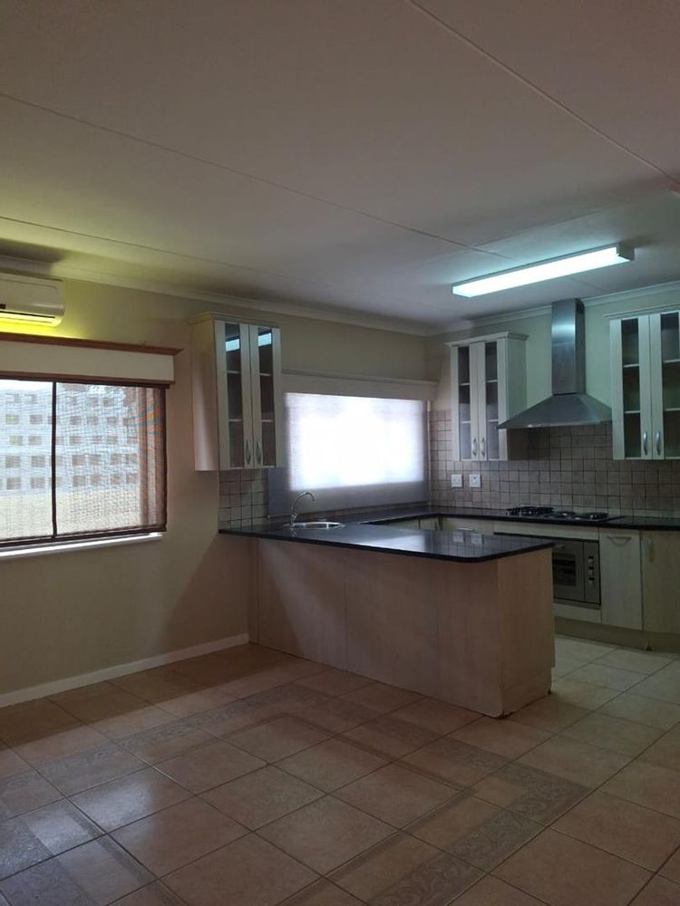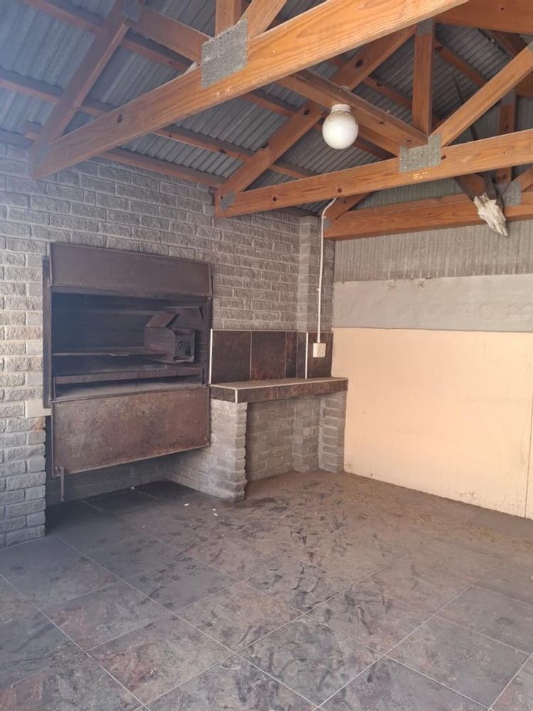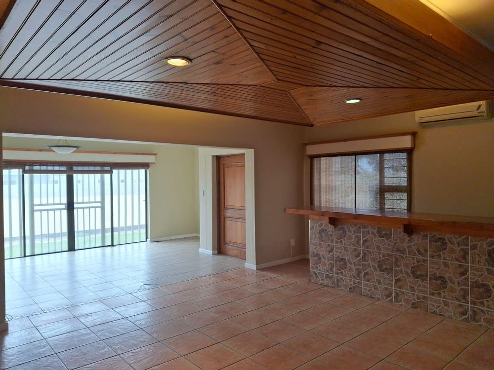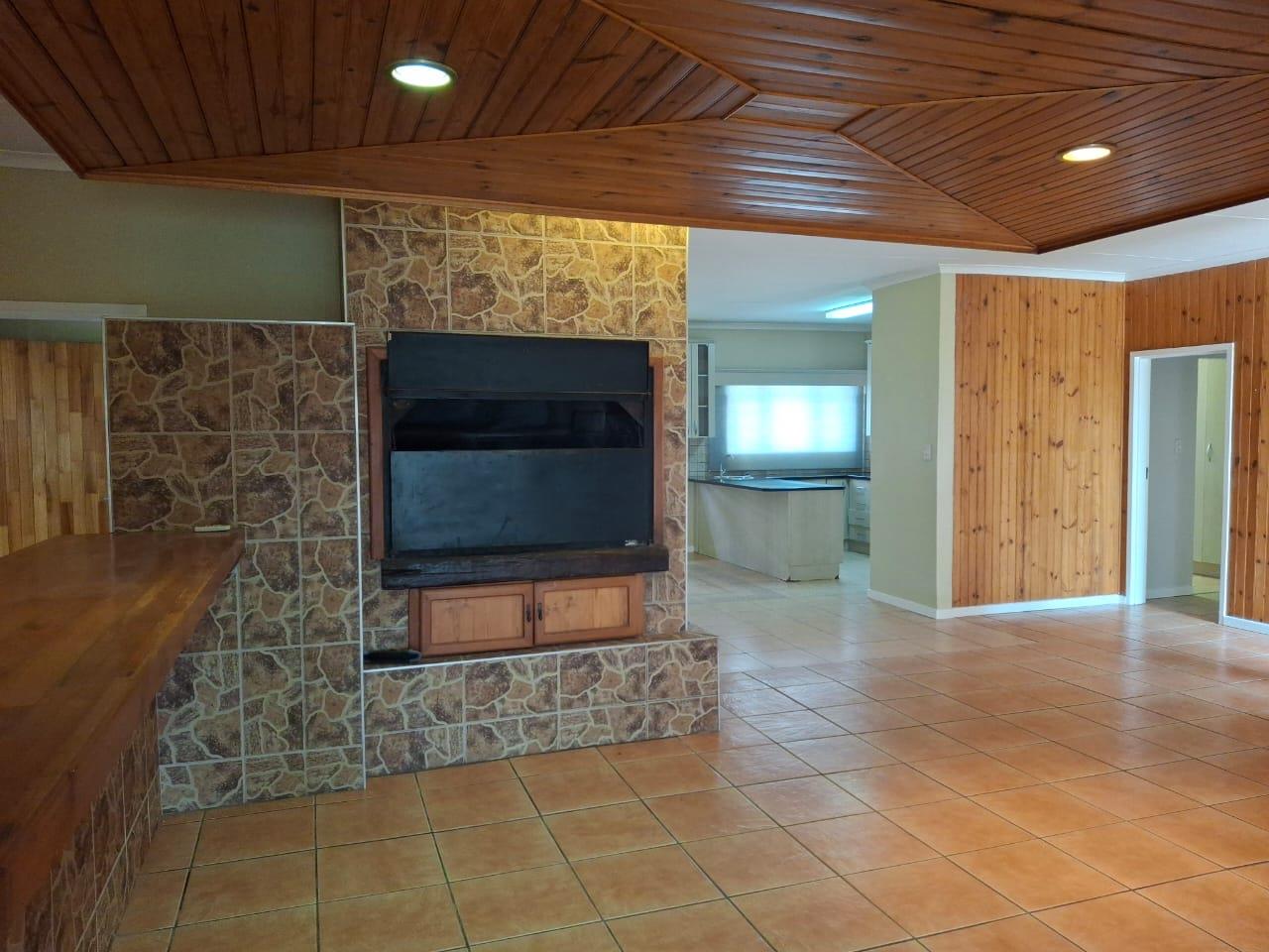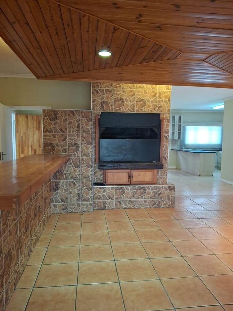 Open plan kitchen, dining area, TV lounge and indoor braai area opening onto an enclosed garden